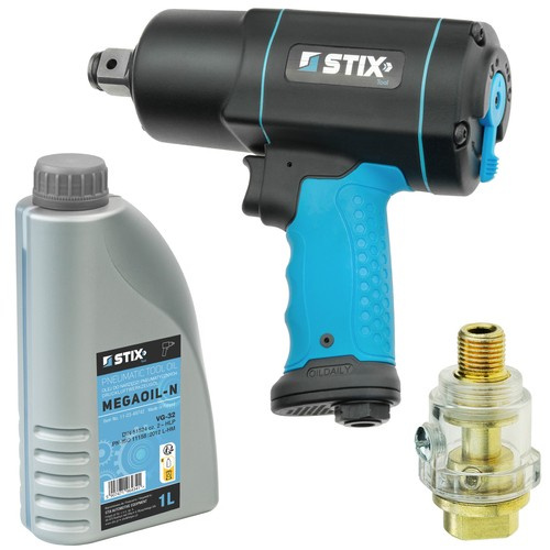 Kompozytowy Klucz Pneumatyczny Udarowy 1700Nm STIX STT-17 1/2" + Naolejacz przelotowy mini 1/4" + Olej do kluczy i narzędzi pneumatycznych VG-32 - 1L MEGAOIL-N