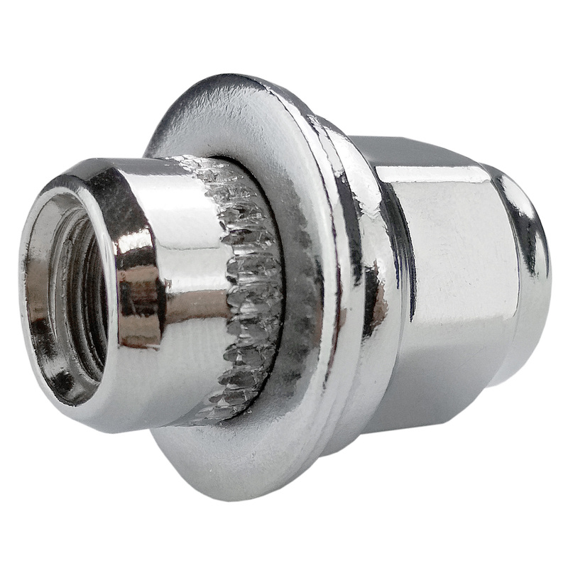 Befestigungsmutter mit spezieller beweglicher Unterlegscheibe, die sich ideal für Originalfelgen mit flachen Muffen von Automarken wie Lexus, Mitsubishi oder Toyota eignet.