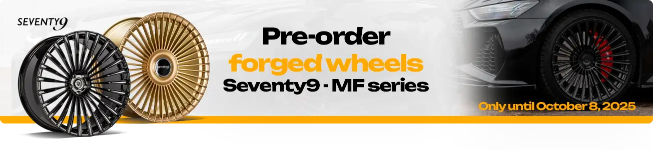 ( number of products: 72 )Seventy9 MF forged wheels are an absolute novelty on the market and a proposal for drivers who expect maximum durability, lightness, and prestige. Made of aerospace-grade 6061 aluminum using forging technology and precise CNC machining, they combine a sporty character with luxurious design. Now you have a unique opportunity to get them in the pre-sale – with an additional bonus.